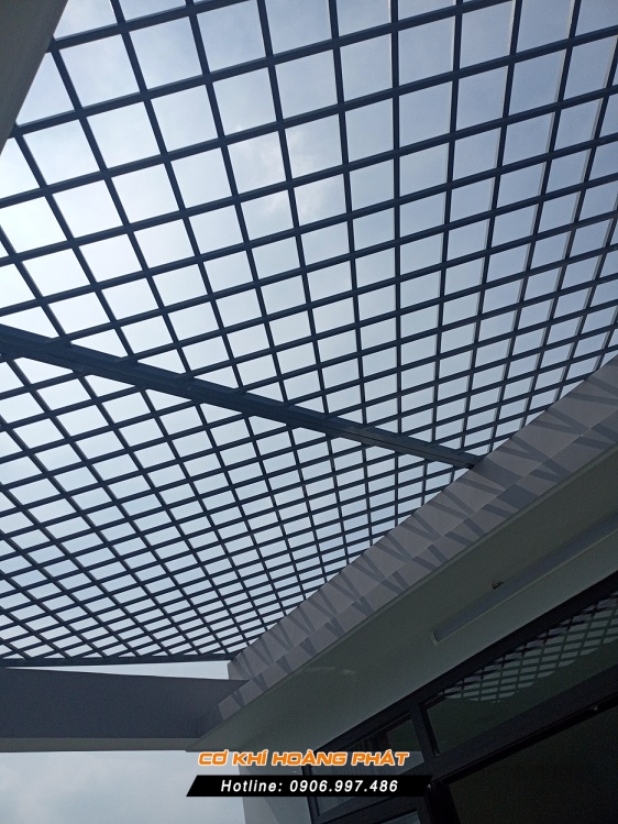 + Khung sắt giếng trời: Sắt hộp mạ kẽm 20x20x1.2mm, thi công theo hình caro, sơn lắp đặt hoàn thiện, giá 520.000đ/m2.